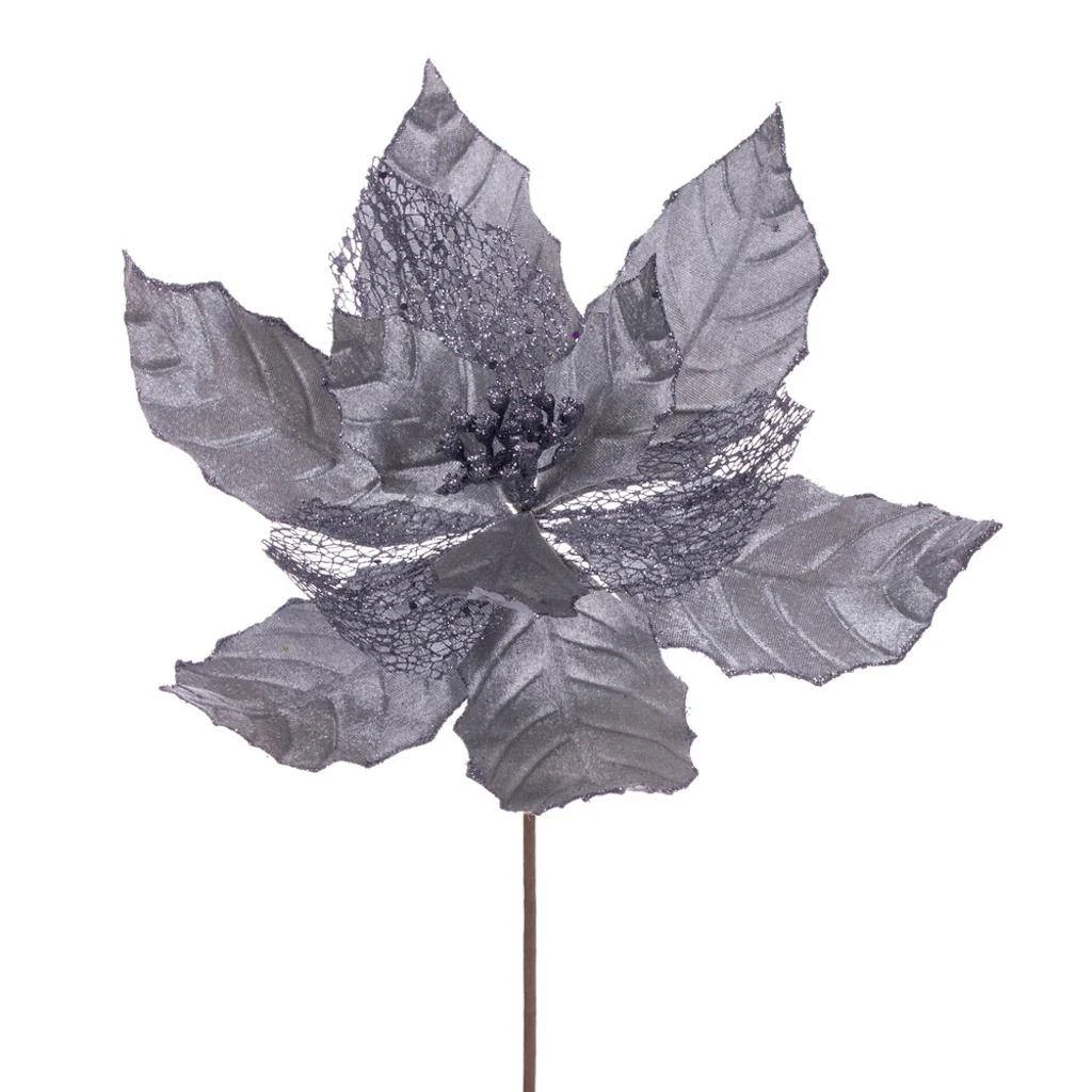 | Manufacturer Description: | 11″ Pewter Glitter Mesh Poinsettia 6/Bg (QG227987) |