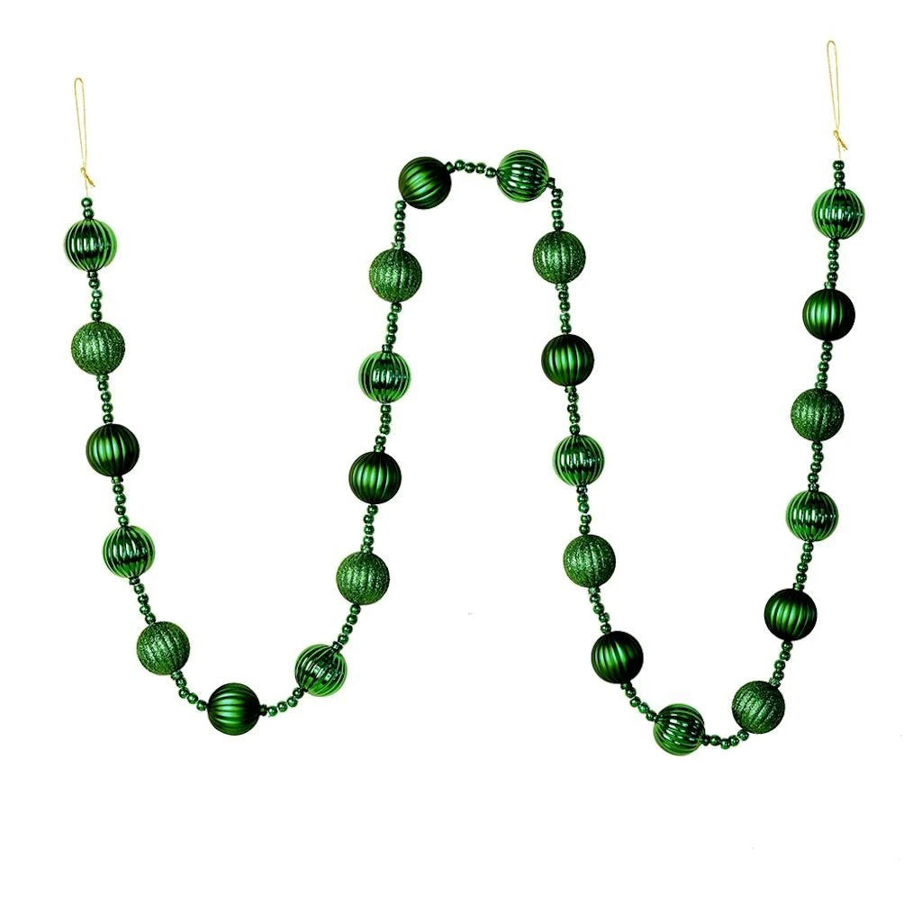 | Manufacturer Description: | 6′ Emerald Stripe Ball Ornament Garland (M183524) | ||