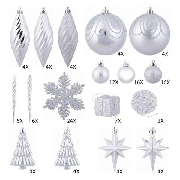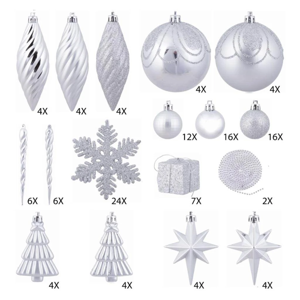| Manufacturer Description: | 125Pc Silver Ornament Set (N512507) | ||||||||||||||||||||||||||||||||||||||||||||||||